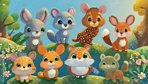 © netsay, Naklejka premium Vibrant and Adorable Cartoon Baby Animals Characters Set Featuring Playful and Cute Designs – Iconic Baby Animal Illustrations Perfect for Kids, Educational, or Decorative Uses