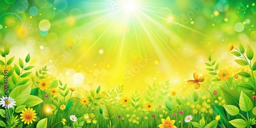 Obraz premium Vibrant and Bright Yellow Green Sunny Background with Colorful Nature Elements
