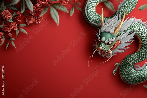 © Jiraphat.N, Naklejka premium Vibrant and Captivating of a Majestic Chinese Dragon in Traditional Style Featuring Ornate Patterns Intricate Scales and Symbolic Zodiac Elements