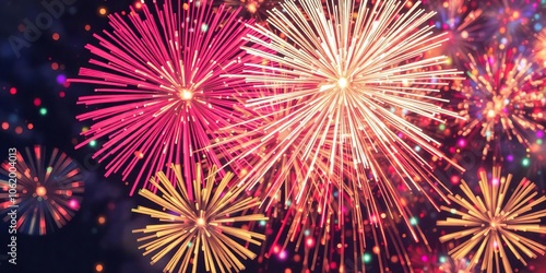 Naklejka premium Vibrant and colorful abstract firework display with copy space, Fourth of July, abstract