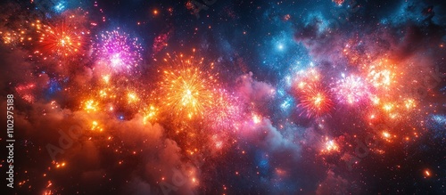 Naklejka premium Vibrant and colorful fireworks display lighting up the night sky with...