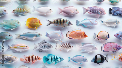 Naklejka premium Vibrant and colorful fish species displayed against a white background