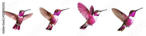 © Naruedetch, Naklejka premium Vibrant and Colorful Hummingbirds Captured in Mid Flight Showcasing Their Intricate Feathers Graceful Movements and Fascinating Aerial Agility as They Hover and Dart Through the Air