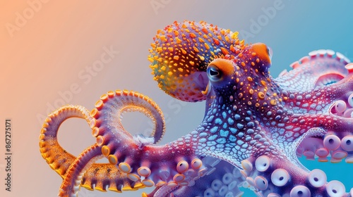 Obraz premium Vibrant and Colorful Octopus Underwater with Detailed Textures and Patterns in a Gradient Background