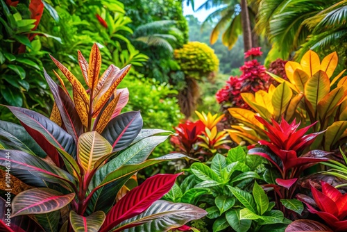 Fototapeta premium Vibrant and Colorful Tropical Plants with Upright Leaves in a Lush Garden...