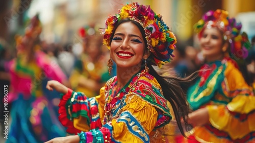 © Rudsaphon, Fototapeta premium Vibrant and Joyful Cultural Festival in South America