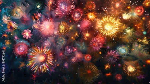 Naklejka premium Vibrant and vivid display of colorful fireworks illuminating the dark night...