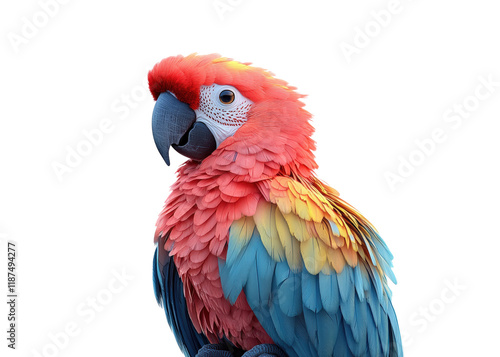 © Mark, Fototapeta premium Vibrant animated parrot sculpture studio display creative space close-up high fidelity detail isolated on transparent background png