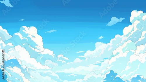 Fototapeta premium Vibrant Anime Sky Background with Fluffy White Clouds and Blue Sky, perfect for animation and illustration