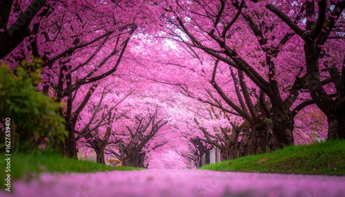 © Fazeel, Obraz premium Vibrant anime-style cherry blossom forest, petals drifting in soft wind, vivid pink hues, ultra-detailed, anime foto