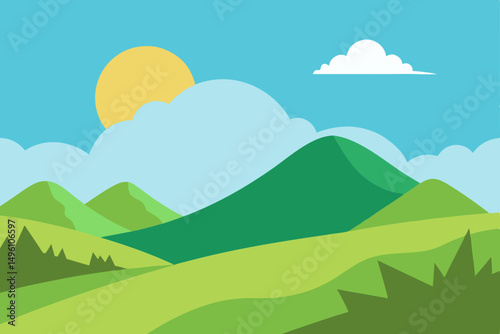 Fototapeta premium Vibrant Anime Style Landscape with Rolling Hills and Bright Sky Vector Illustration Background