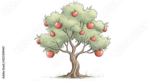 Obraz premium Vibrant apple tree illustration