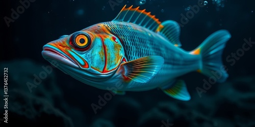 Fototapeta premium Vibrant Aquatic Creature with Striking Scales and Fins, Swimming Gracefully in Deep Ocean Waters