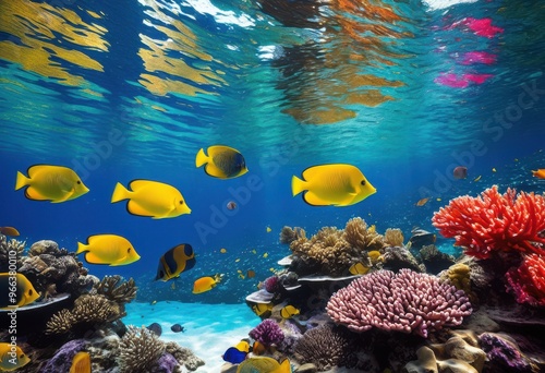 Fototapeta premium vibrant aquatic ecosystem displaying diverse marine life colorful coral...