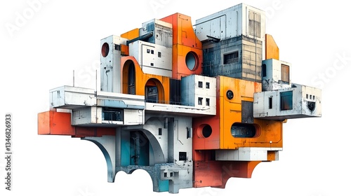 Obraz premium Vibrant Architectural Abstraction Futuristic Urban Structure with Colorful Geometric Modules