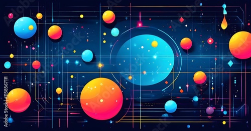 Obraz premium vibrant arrangement of colorful geometric shapes and lines creates a dynamic...