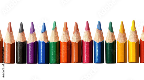 Fototapeta premium Vibrant array of colored pencils arranged neatly on a white background for...