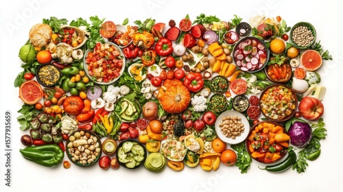 © ZURIANI, Fototapeta premium Vibrant Array of Fresh Vegetables and Fruits on White Background