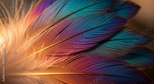 Fototapeta premium Vibrant array of soft feathers in a spectrum of enchanting colors, reflecting...