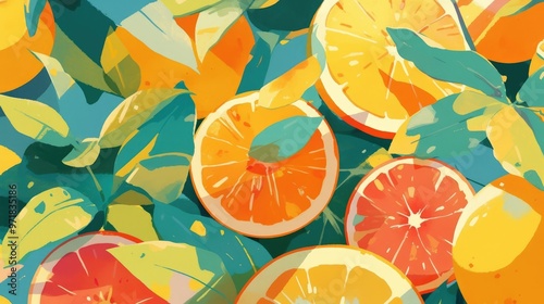 Fototapeta premium Vibrant artwork depicting grapefruit in an array of stunning colors