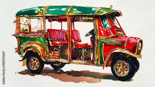 Obraz premium Vibrant Asian Tuk Tuk Watercolor Painting Travel Transport Culture