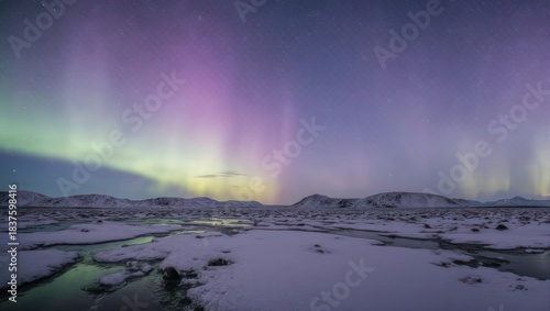 Naklejka premium Vibrant Aurora Borealis Dancing Over a Frozen Winter Landscape.