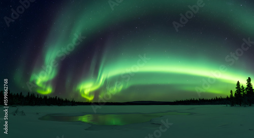 © Rifqi Akbar, Naklejka premium Vibrant Aurora Borealis Dancing Over Frozen Landscape