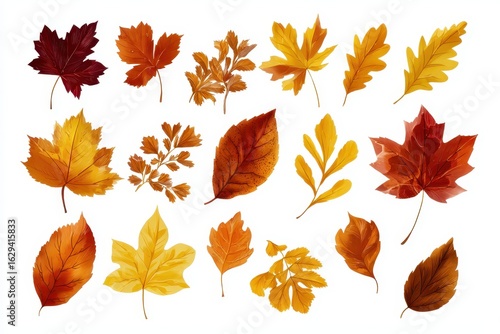 Fototapeta premium Vibrant autumn falling leaves in vector silhouette showcasing the beauty of maple and various foliage types during the transition of seasons