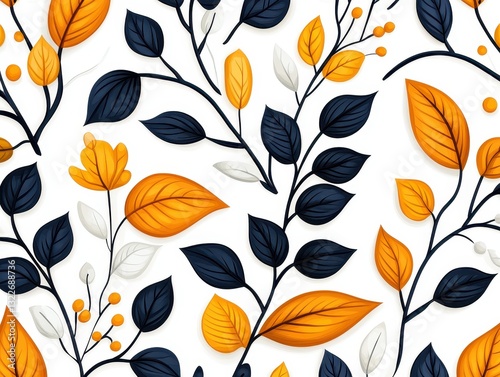 Fototapeta premium Vibrant autumn foliage pattern featuring colorful leaves and berries on a...