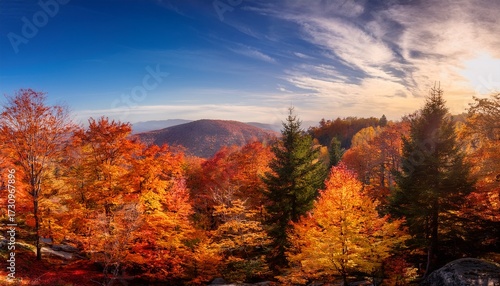 © Zoie, Fototapeta premium Vibrant Autumn Landscape Featuring Golden And Red Trees Amidst A Serene Forest Setting