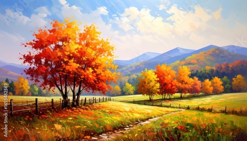 © mario, Naklejka premium Vibrant Autumn Landscape Painting