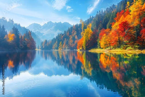 Naklejka premium Vibrant Autumn Landscape Reflection on a Lake