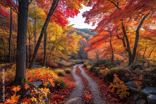 © Michael, Naklejka premium Vibrant Autumn Landscape with Colorful Foliage in Nature Reserve