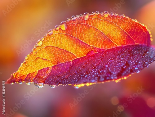 Naklejka premium Vibrant autumn leaf close-up nature photography outdoor setting macro view...