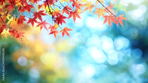 Fototapeta premium Vibrant autumn leaves against a blurred background.