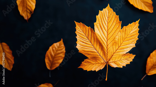 Fototapeta premium Vibrant autumn leaves in shades of orange against dark background