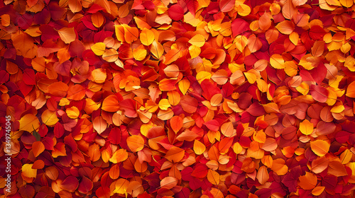 © alimurtaza, Fototapeta premium Vibrant autumn leaves in shades of red, orange, and yellow, a warm seasonal background with detailed textures and bright colors.