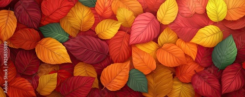 © Tin, Fototapeta premium Vibrant autumn leaves in shades of red, orange, and yellow create a stunning natural pattern perfect for seasonal visuals.