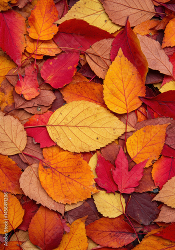 © Chantelle, Fototapeta premium Vibrant autumn leaves in shades of red, yellow, and orange create a warm and colorful display.