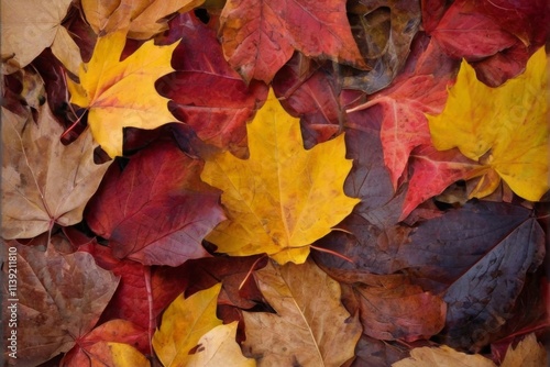 Fototapeta premium Vibrant Autumn Leaves on Dark Background with Peaceful Serene Mood