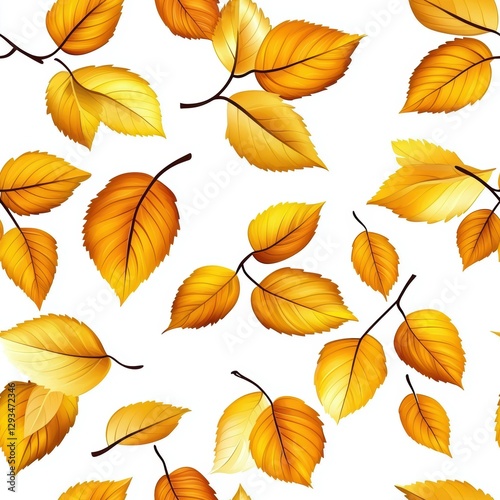© Jiranath, Obraz premium Vibrant Autumn Leaves Seamless pattern in Warm Yellow and Golden Tones on a Clean White Background for Seasonal Aesthetic