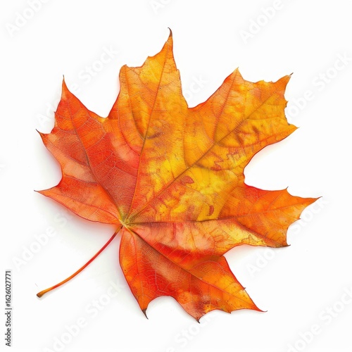 © Ubaid.Std, Obraz premium Vibrant autumn maple leaf against white (1)