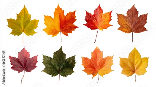 © Nisha50, Fototapeta premium Vibrant Autumn Maple Leaves Set Isolated on White Background