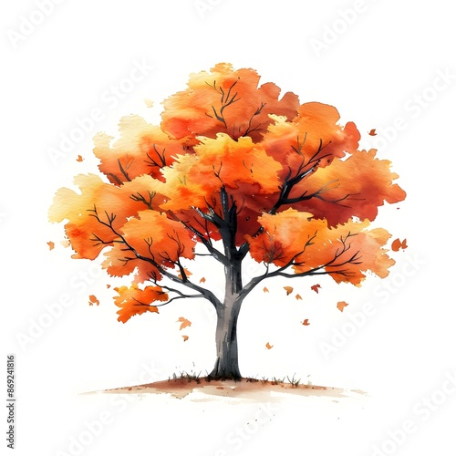 © yelosole, Fototapeta premium Vibrant Autumnal Tree Watercolor Painting with Warm Rustic Countryside Tones