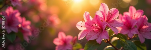 Fototapeta premium Vibrant azalea flowers in full bloom under the warm spring sunlight, flora,...