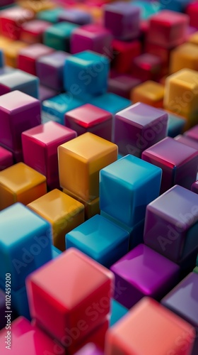 Obraz premium Vibrant Background of Colorful Cubes in Dynamic Arrangements, Creating a Bold...