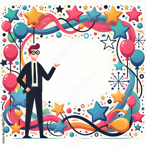 © Netaya, Obraz premium Vibrant Balloon Background with Sparkling Lights and Ample Copy Space for Celebrations and Branding