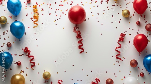 Fototapeta premium Vibrant balloons and confetti create a colorful display on a white background