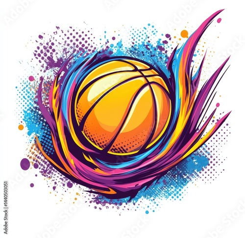 Fototapeta premium Vibrant basketball engulfed in dynamic, colorful flames