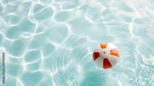 Naklejka premium Vibrant beach ball floating in clear blue swimming pool water, creating...